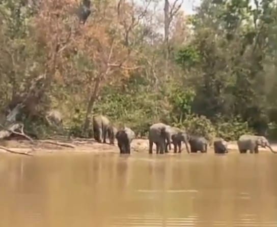 उत्तराखंड के उधम सिंह नगर जिले के तराई पश्चिम वन प्रभाग के पतरामपुर रेंज में हाथियों का एक झुंड तालाब में अटखेलियां करता नजर आया . हाथियों के इस झुंड में कई बच्चे भी नजर आए ..हाथियों का झुंड जंगल मे बने वाटर हाल से पानी पीकर वापस जंगल की तरफ रवाना हुआ ..